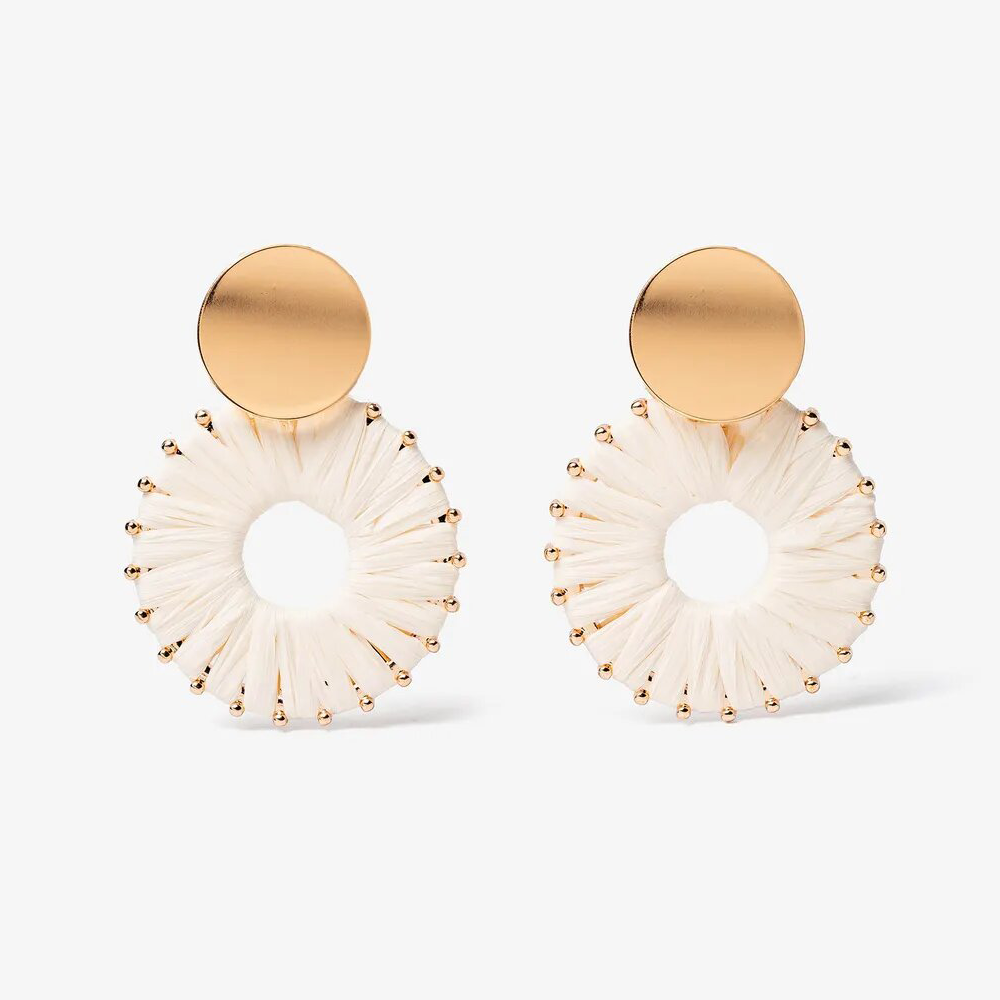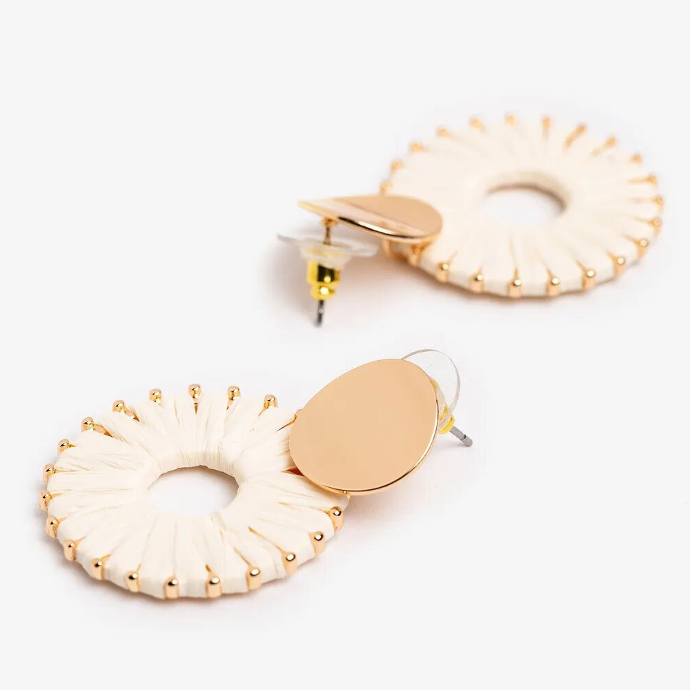 Pendientes colgantes metálicos, con efecto paja en contraste. Cierre de tapón. Tamaño medio.